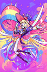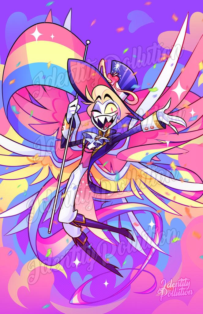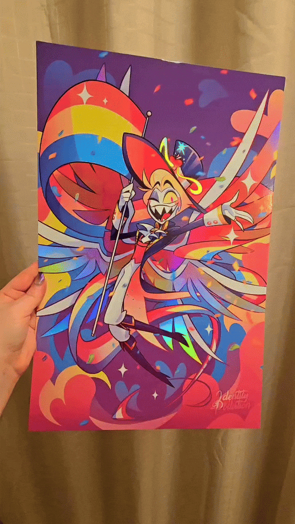 This specialty holographic print is sourced from a small local shop and features a complex printing process using white ink in strategically placed zones, CMYK (with its own strategically cut areas) and UV coating over an extra heavy-weight holographic cardstock to create a truly striking effect with holo showing through the wings, eyes, snake, hat star, and tailcoat sparkles!